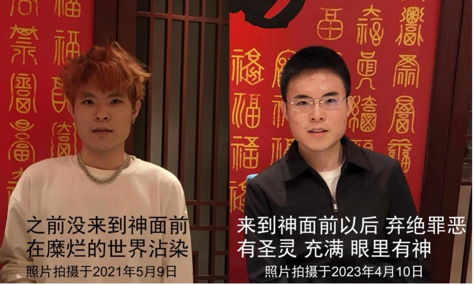 Comparison of photos of Zhou Chuanfu before and after being healed by God: